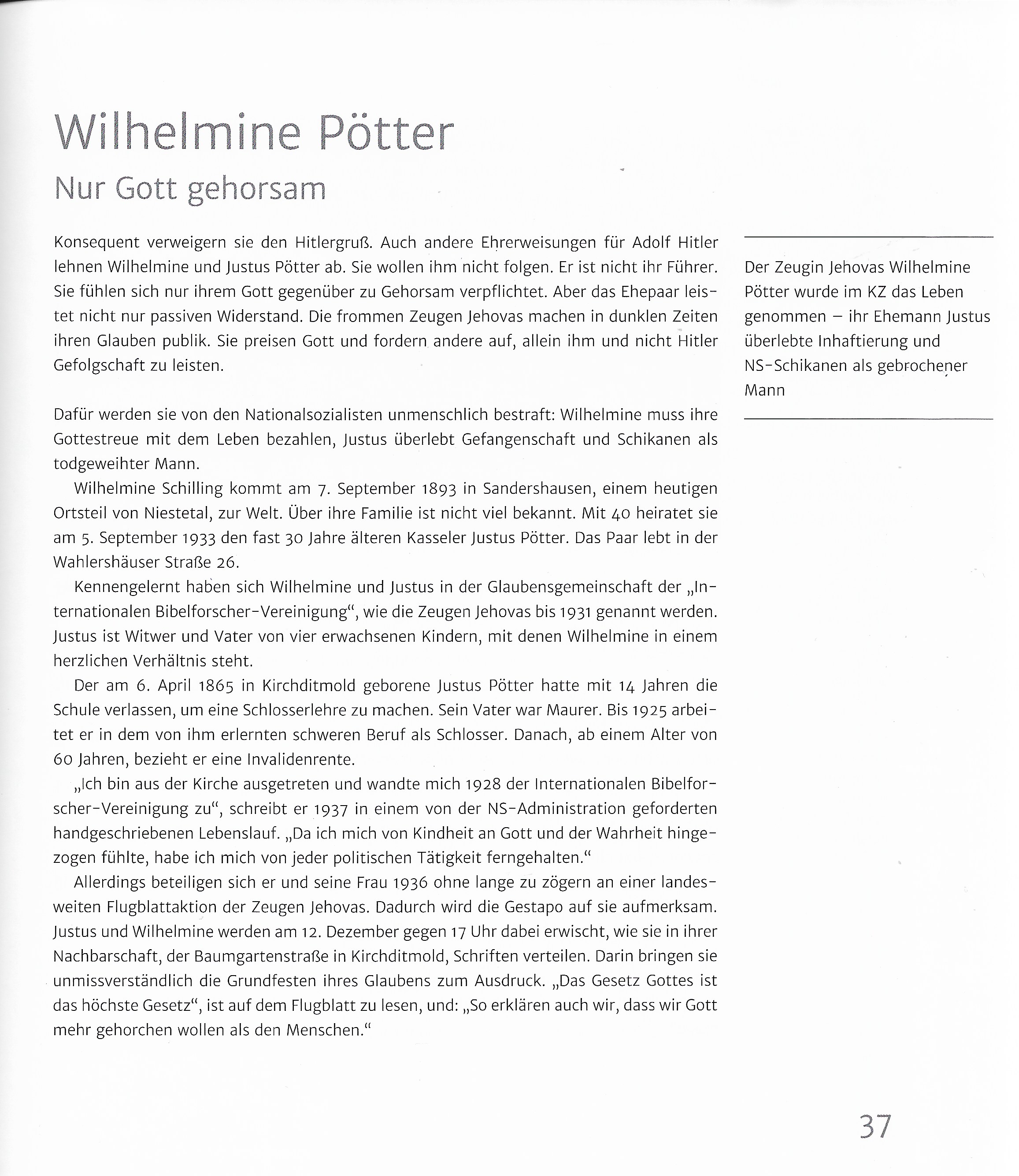 Konsequent verweigern sie den Hitlergruß. Auch andere Ehrerweisungen für Adolf Hitler lehnen Wilhelmine und Justus Pötter ab. Sie wollen ihm nicht folgen. Er ist nicht ihr Führer.