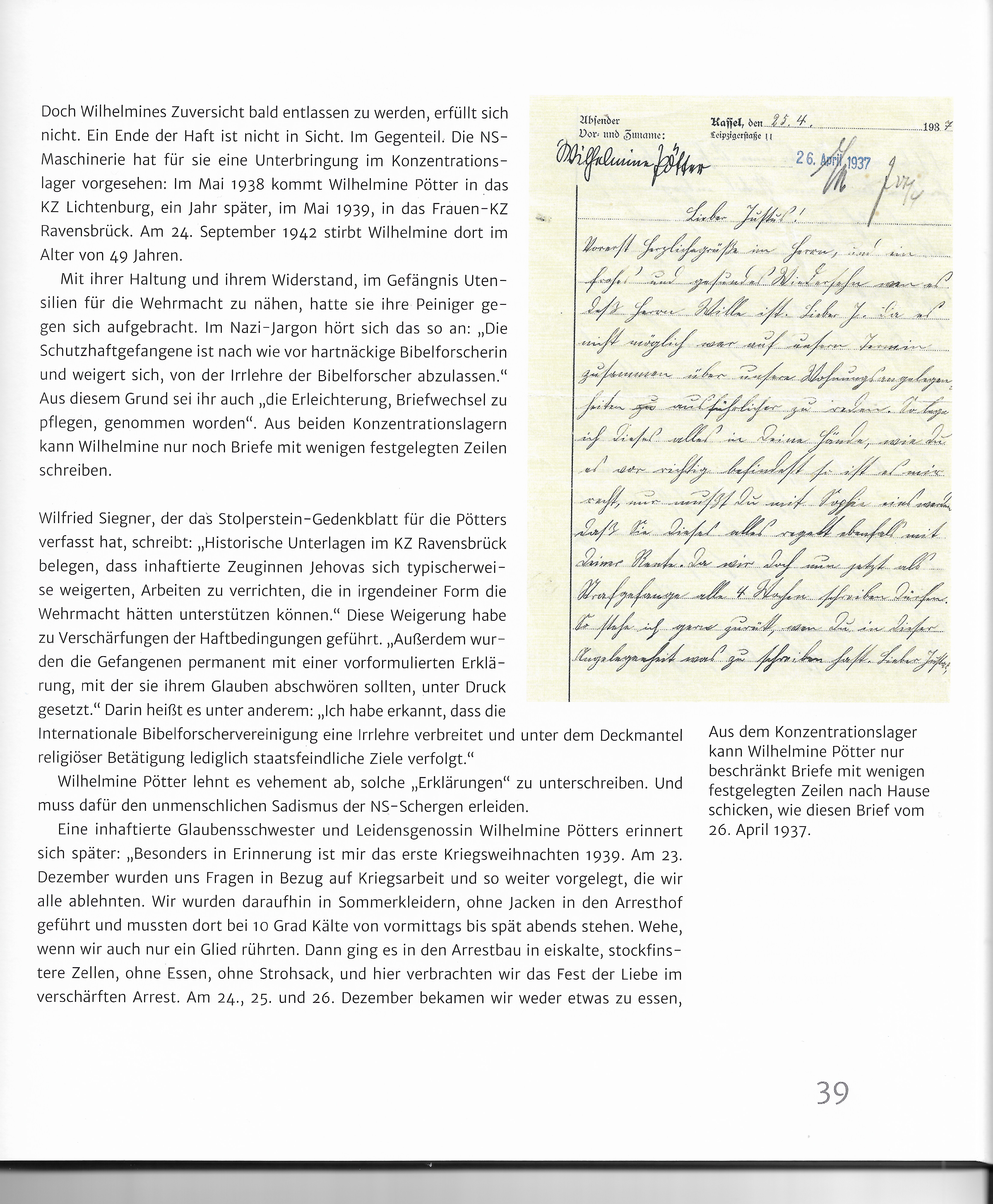 Wilhelmine kommt in das KZ Ravensbrück und weigert sich ihre Überzeugung und ihren Glauben aufzugeben. (Rückseite letzter Brief aus dem KZ Ravensbrück)