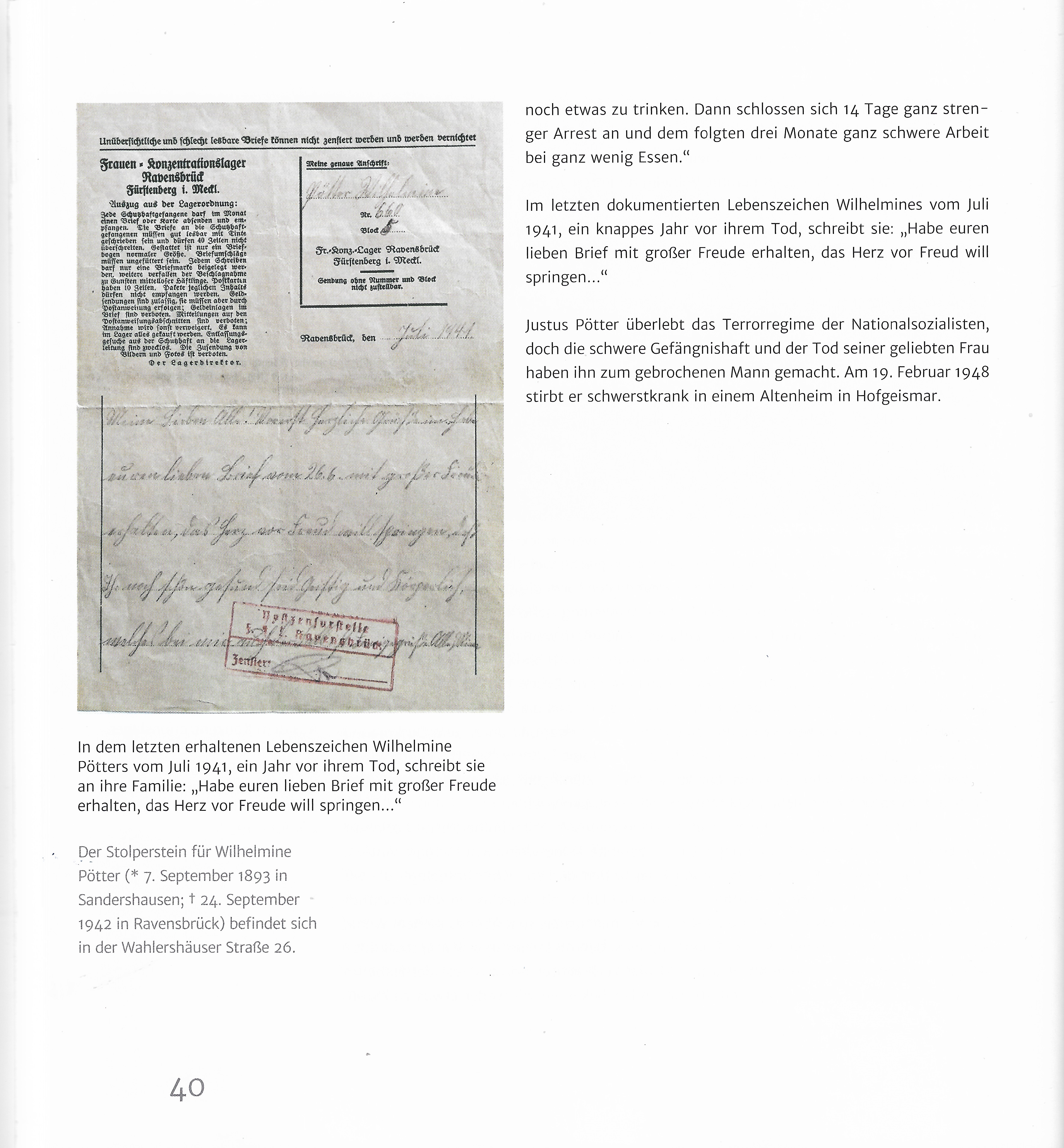 Heiratete sie Justus Pötter und lebeten von da an in der Wahlhäuser Strasse 26 in Kassel.